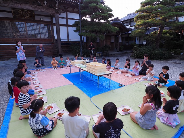 | 保育目標 豊かな子供を育てる ・明るく・正しく・仲良く 保育課程 ➀友達と遊べる子供 (人間尊重の心、愛情、信頼感を育てる) ➁良いこと悪いことがわかる子供 (道徳性の芽生えを培う) ③豊かな心、考える力を持つ子供 (豊かな感性を育て、創造性の芽生えを培う) ※豊陵保育園は、仏教保育を根底にして心身の円満な発達を助長する為に生命尊重の保育、合掌、感謝の保育に重点を置きます |